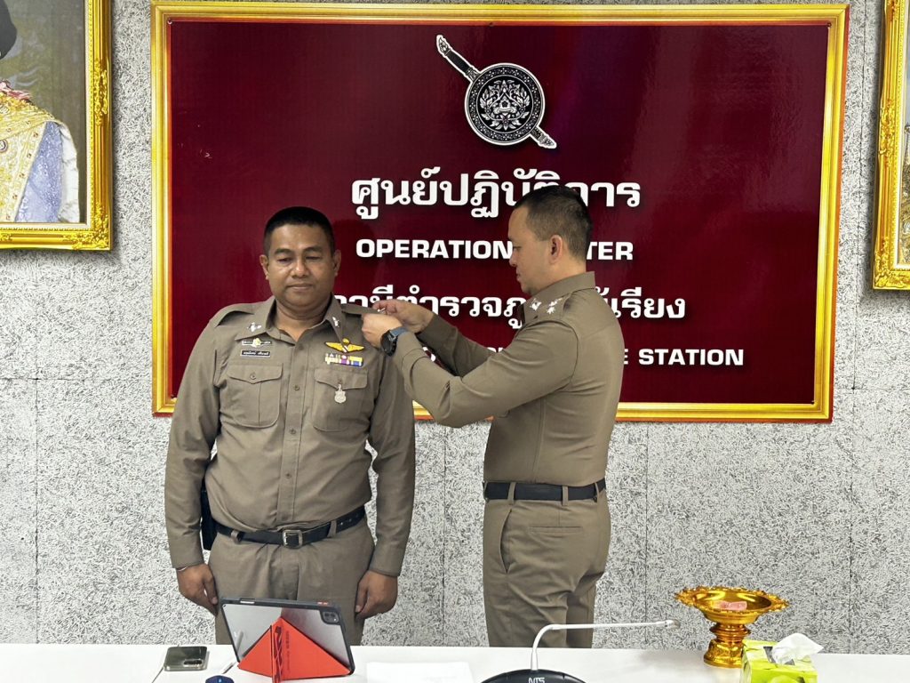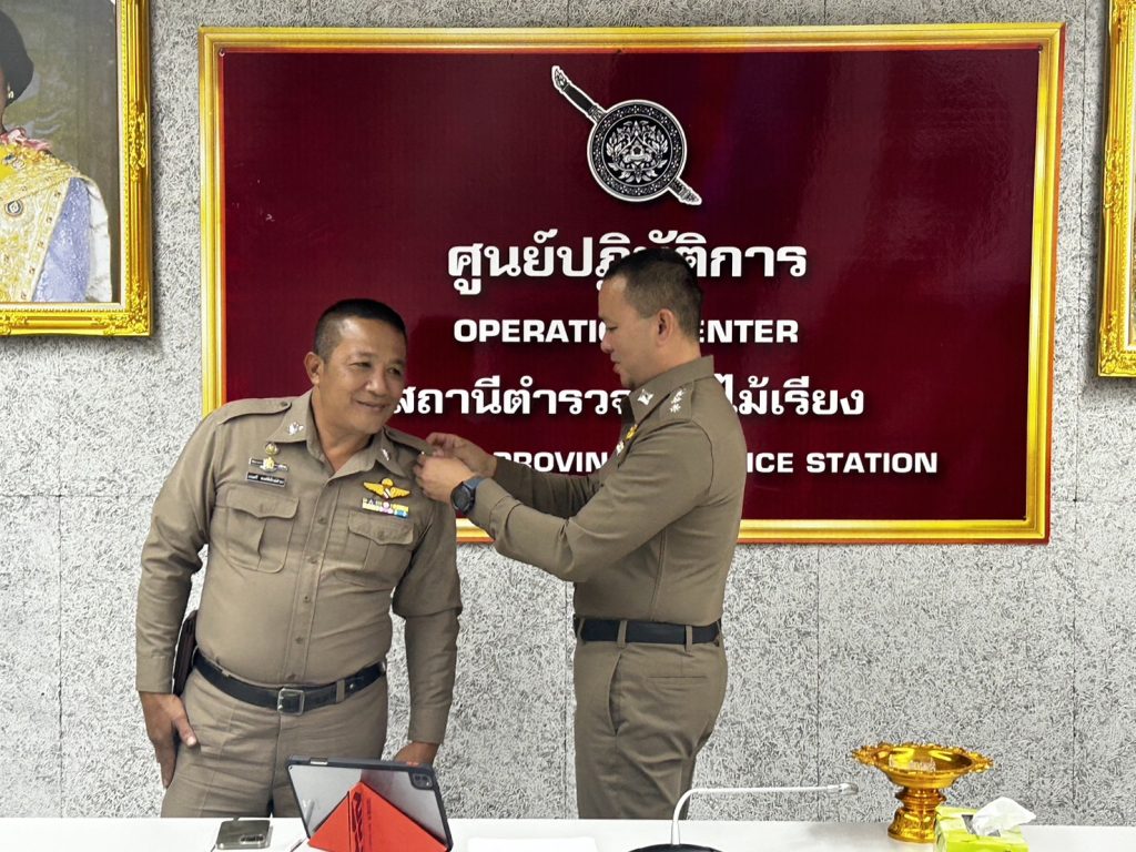 พ.ต.อ.ผดุงพงศ์ ดุกสุขแก้ว ผกก.สภ.ไม้เรียง ร่วมพิธีประดับยศ ร.ต.ต. ให้แก่ข้าราชการตำรวจที่สำเร็จหลักสูตร กดต. รุ่นที่ 13 1 เมษายน 2567 โดย admin / ข่าวภารกิจผู้บังคับบัญชา วันนี้ (1 เมษายน 2567) เวลา 09.30 น. พ.ต.อ.ผดุงพงศ์ ดุกสุขแก้ว ผกก.สภ.ไม้เรียง ได้ร่วมพอธีประดับยศร้อยตำรวจตรีแก่ข้าราชการตำรวจสถานีตำรวจภูธรไม้เรียง ที่สำเร็จหลักสูตร กดต. ในการประชุมประจำเดือนเมษายน ณ ห้อง ศปก.สภ.ไม้เรียง เพื่อเป็นขวัญและกำลังใจในการปฏิบัติหน้าที่ต่อไป Facebook iconFacebookTwitter iconTwitterLINE iconLine