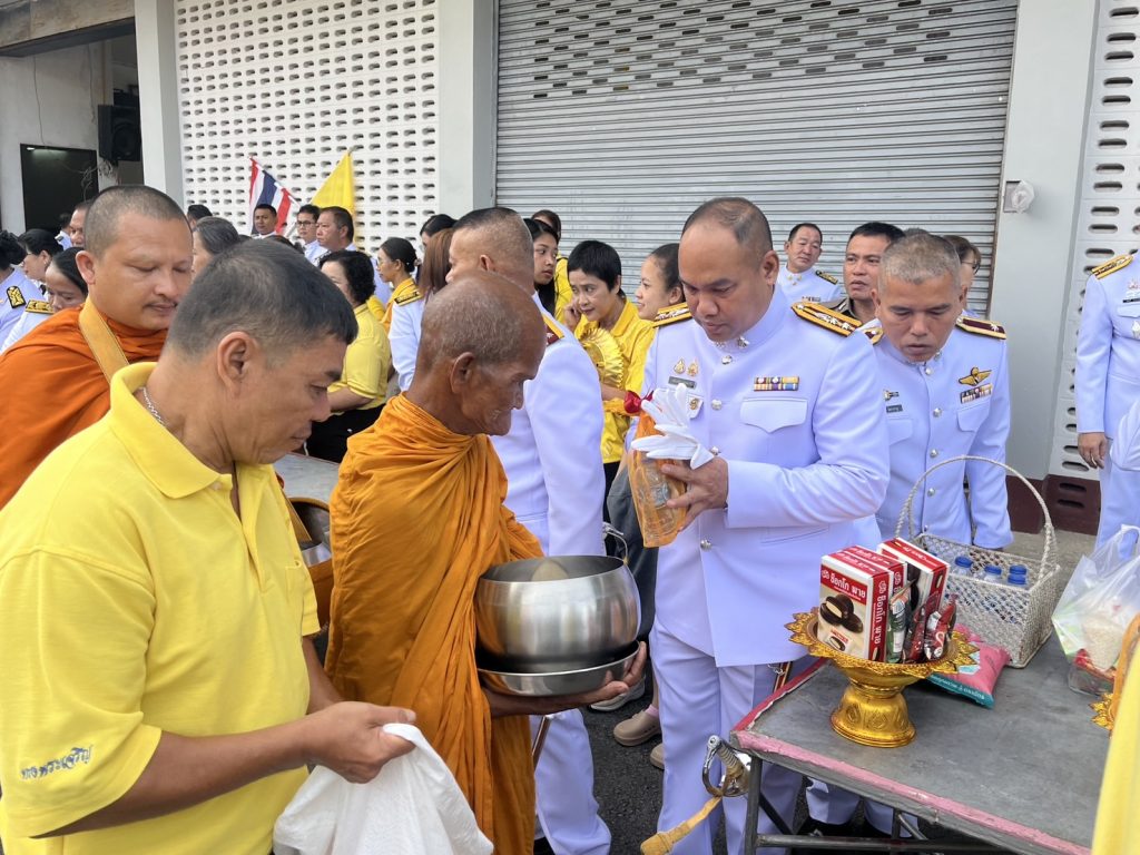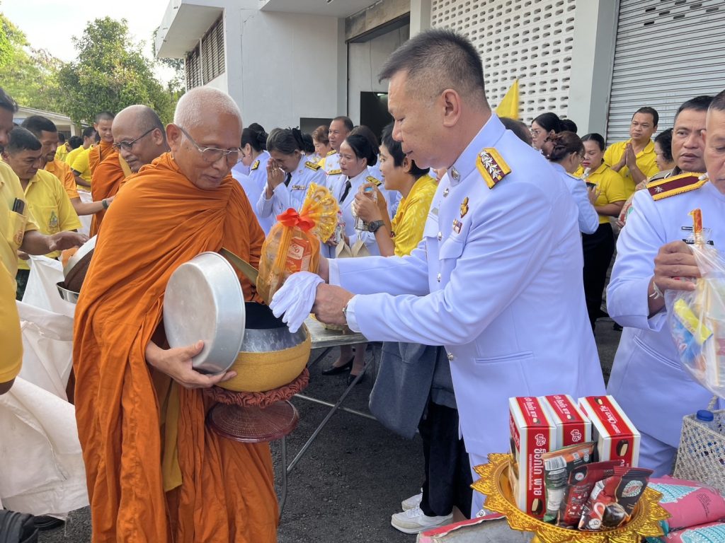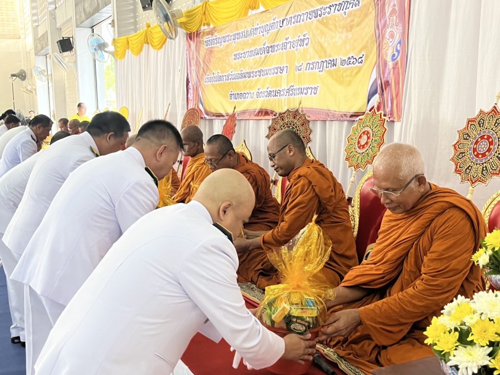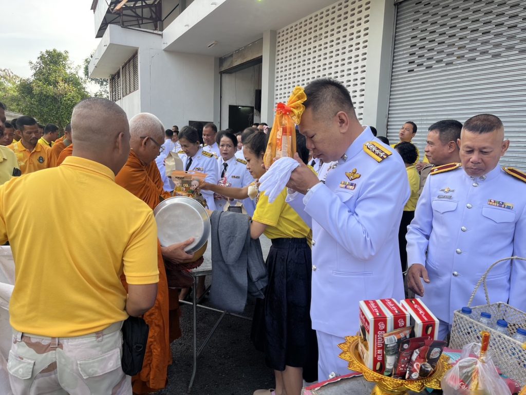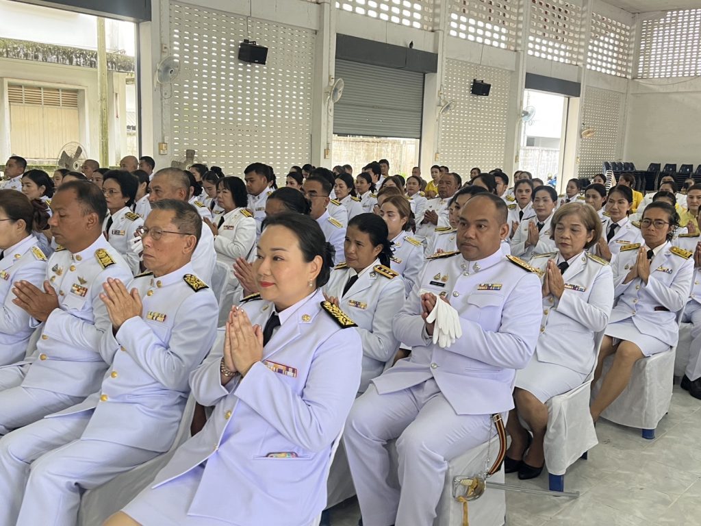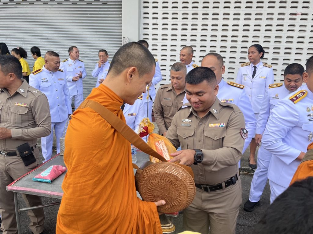 ผกก.สภ.ไม้เรียง พ.ต.ท.ธวัชชัย พิมเสน รอง ผกก.ป.สภ.ไม้เรียง พ.ต.ท.อนันทชัย ยอดนารี สว.อก.สภ.ไม้เรียง พร้อมด้วยข้าราชการตำรวจในสังกัด สภ.ไม้เรียง ได้ร่วมพิธีเจริญพระพุทธมนต์และทำบุญตักบาตรถวายพระราชกุศล เนื่องในโอกาสวันเฉลิมพระชนมพรรษา 28 กรกฎาคม 2568 ณ ศาลาประชาคมอำเภอฉวาง