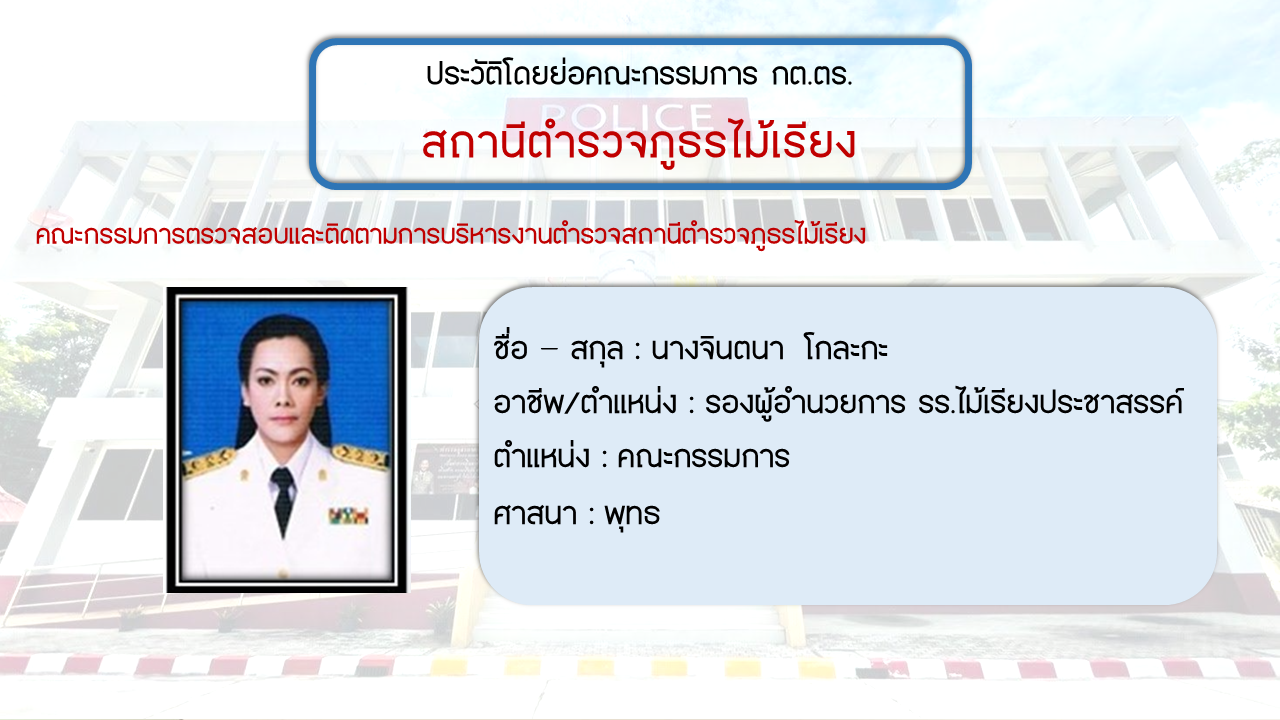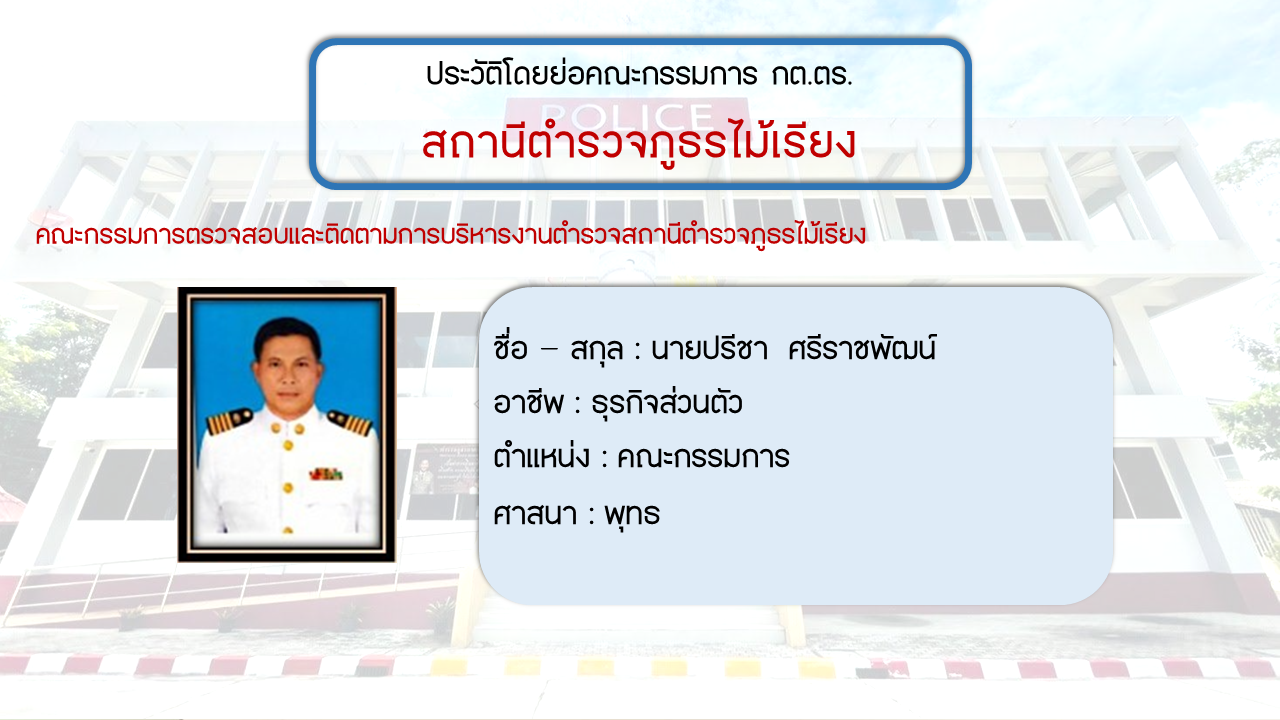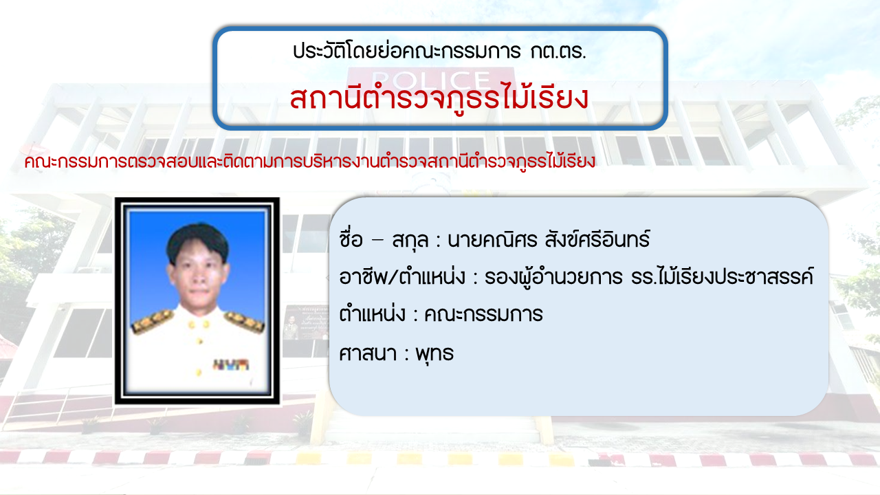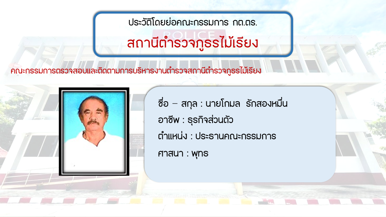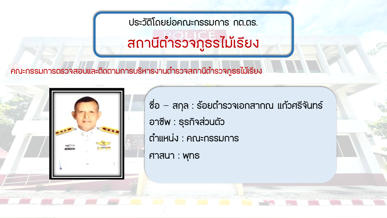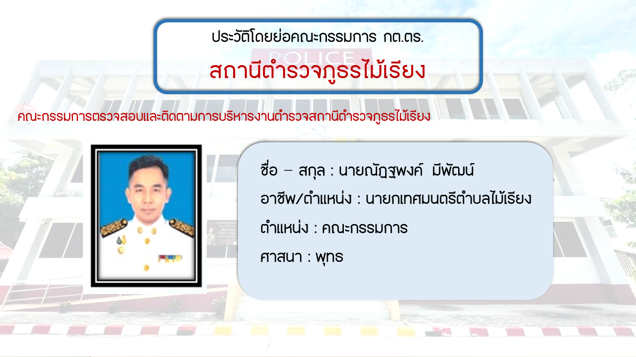 ประวัติโดยย่อ คณะกรรมการตรวจสอบและติดตามการบริหารงารตำรวจ สภ.ไม้เรียง (กต.ตร.) (O4)