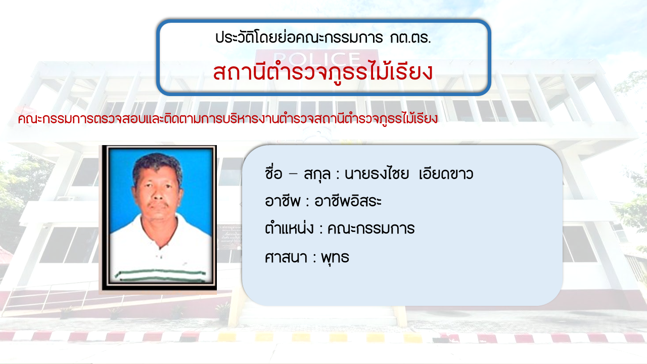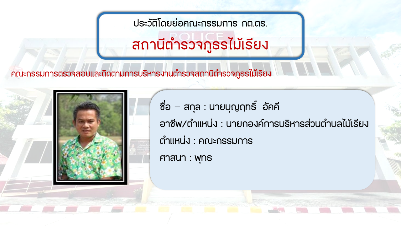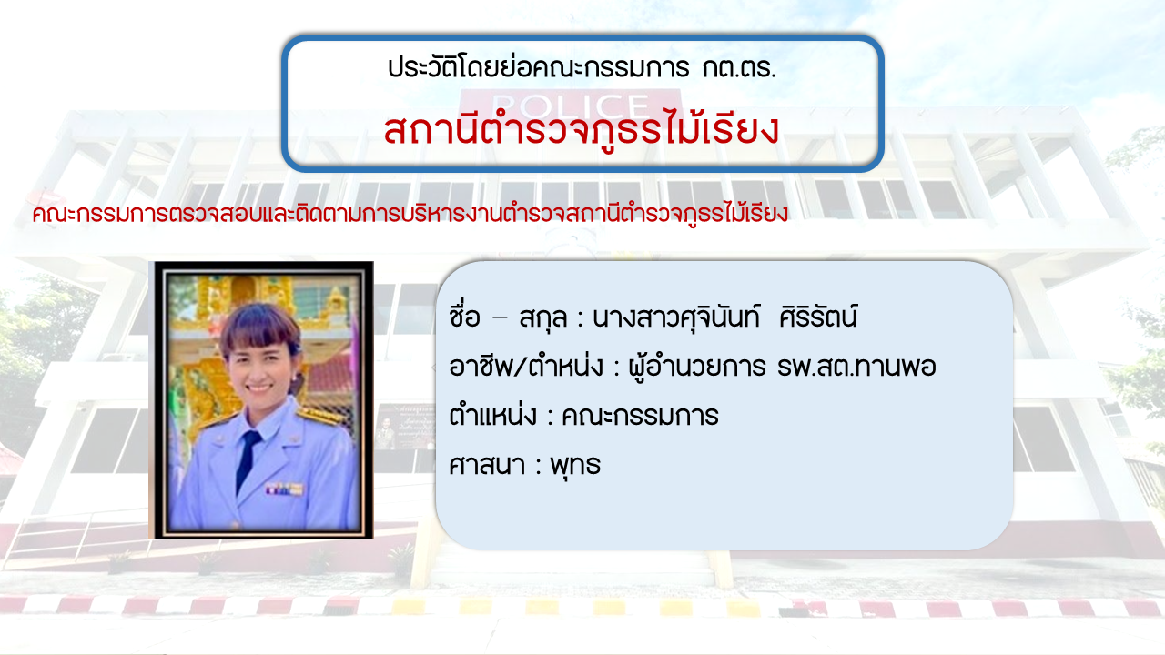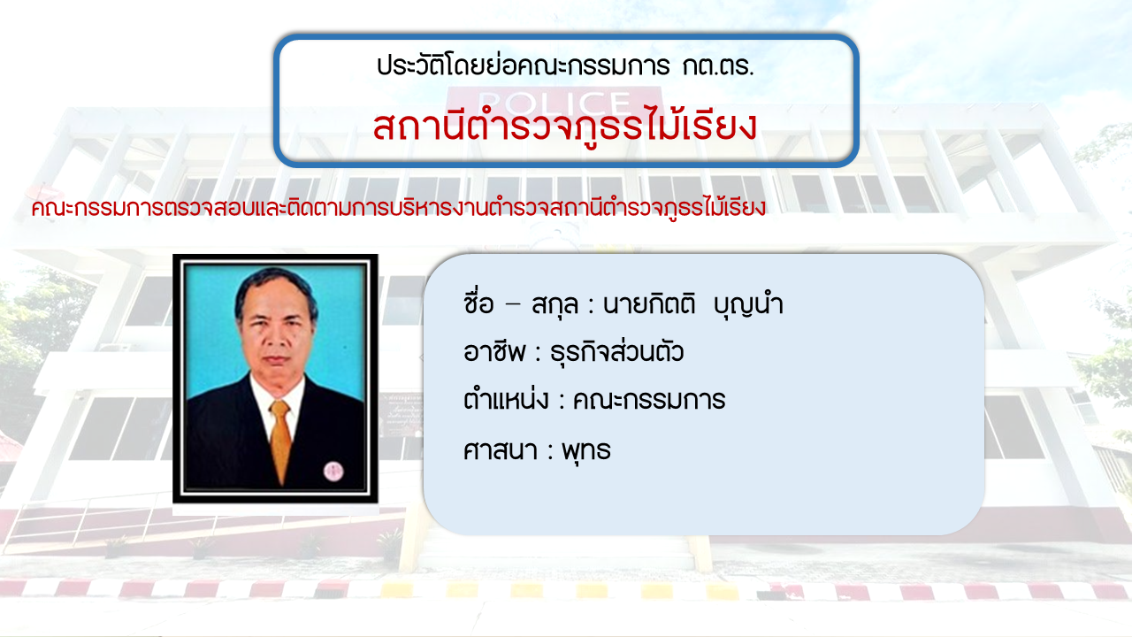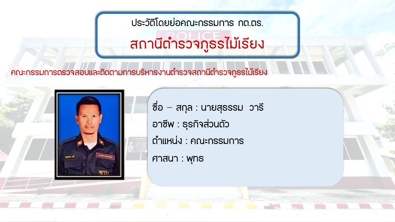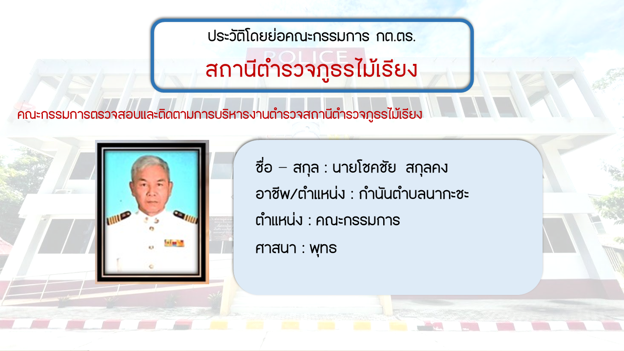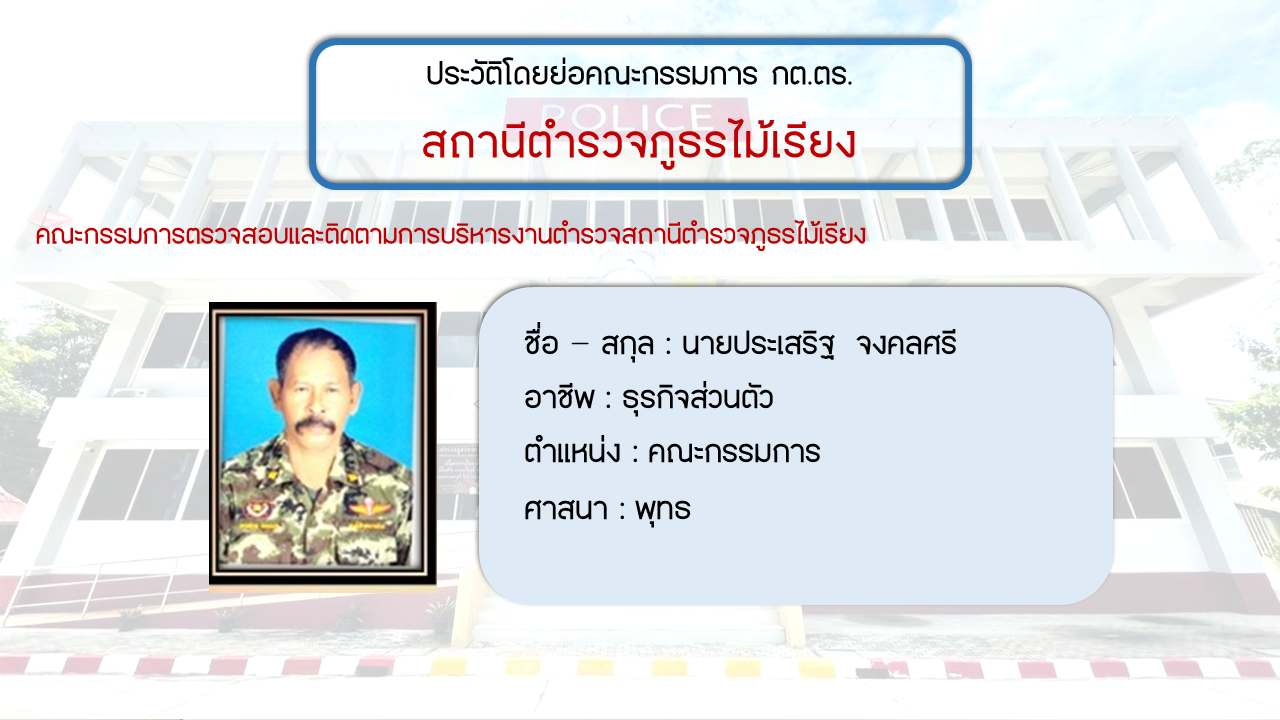 ประวัติโดยย่อ คณะกรรมการตรวจสอบและติดตามการบริหารงารตำรวจ สภ.ไม้เรียง (กต.ตร.) (O4)